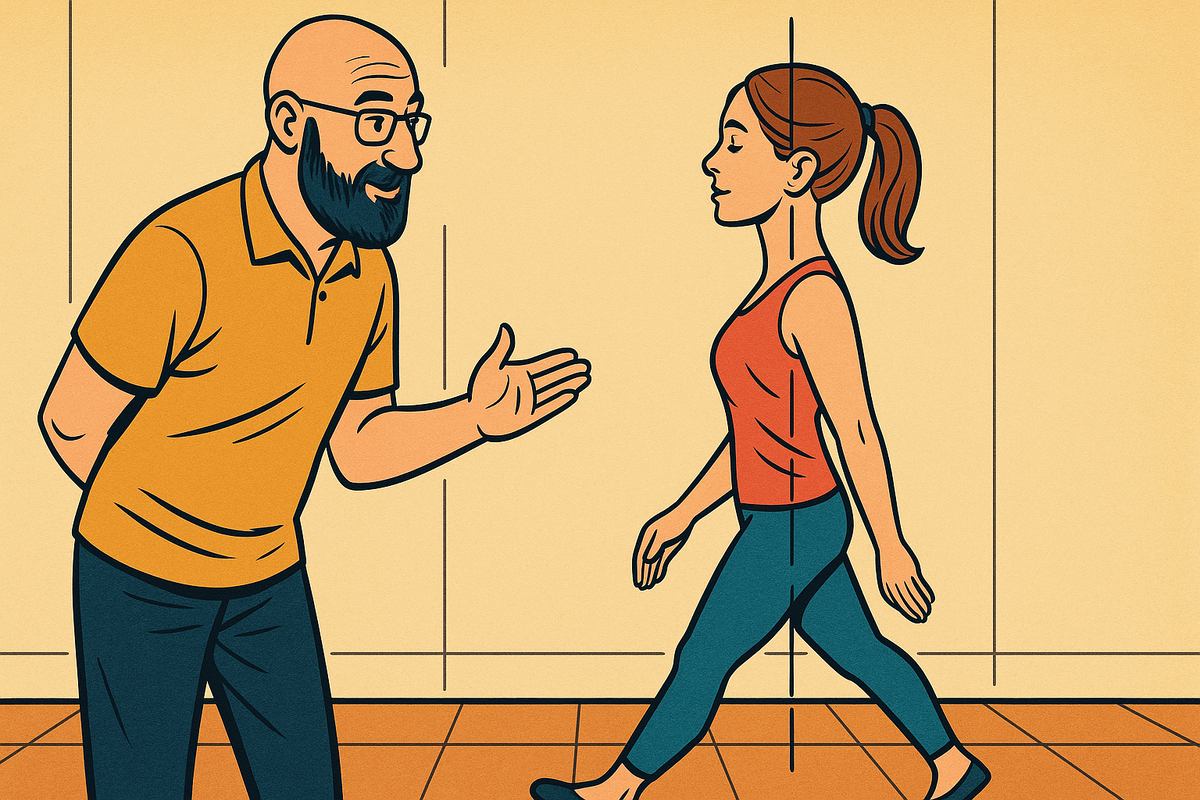 Встаньте у стены и представьте невидимый стержень, тянущий макушку вверх. Совет от Сатьи: «Осанка — это язык тела без слов. Пусть он говорит за вас». 🔸 Шаг 2. «Привлекательная походка»
