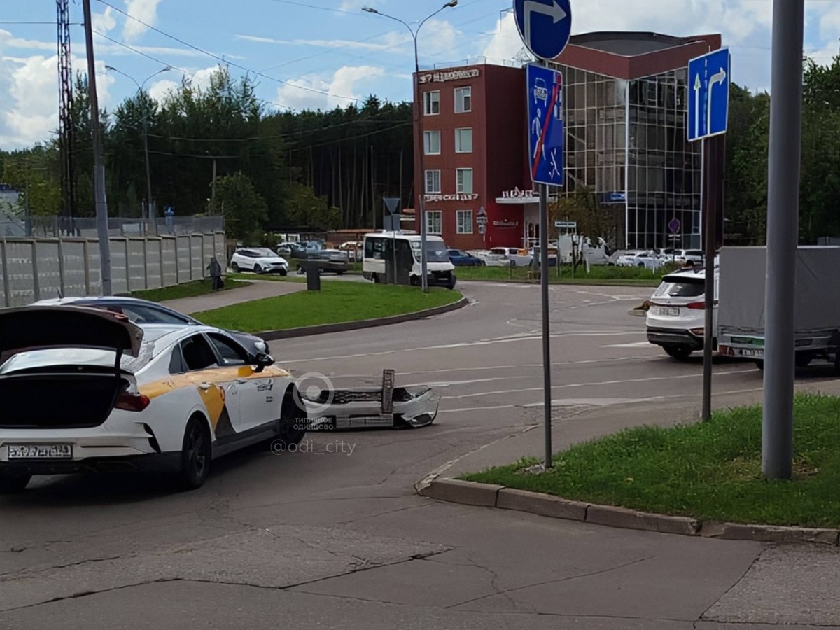 Бампер оторвало у автомобиля перед кругом на Чикина