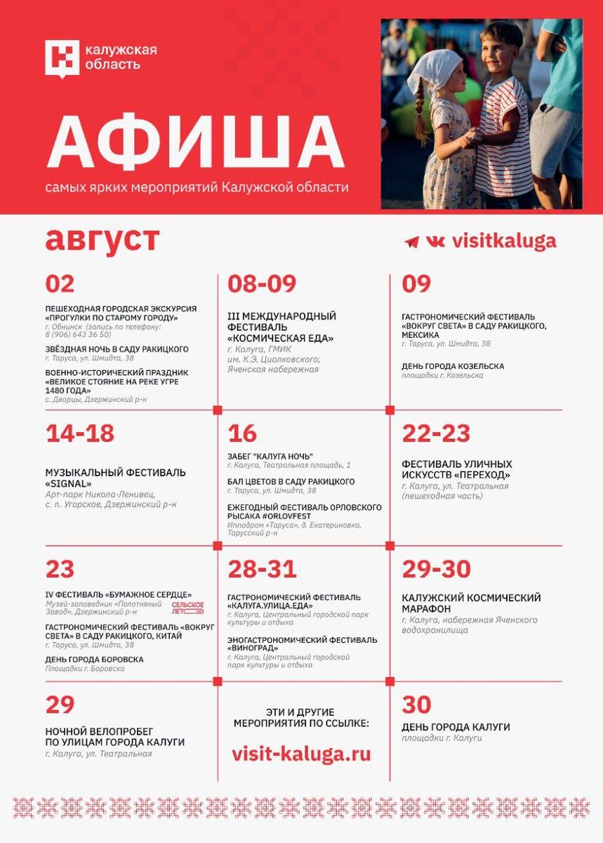 Делимся с вами афишей крупных праздников и фестивалей в регионе на август.