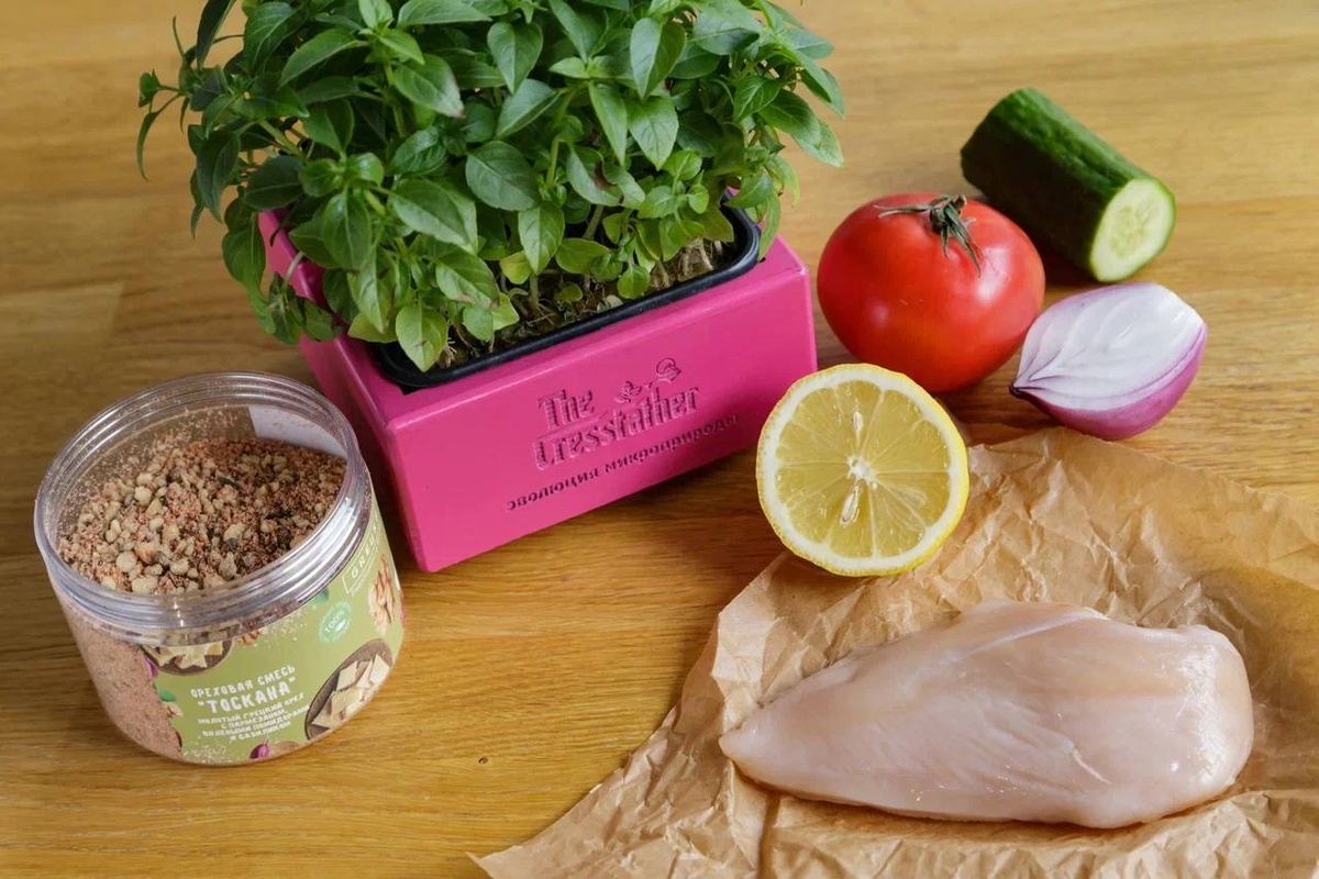 Идеальный обед или легкий ужин — хрустящие куриные палочки в ореховой панировке с сочным овощным салатом. Шеф Алексей Химандритов из студии Юлии Высоцкой делится пошаговым рецептом! ________ 🛒 Ингредиенты: Для куриных палочек: Куриное филе — 120 г Куриное яйцо — 1 шт Грецкий орех со специями (Тоскана) — 50 г Масло для фритюра — 200 г Микрозелень лука Шнитт — для украшения Для салата: Огурец свежий — 40 г Помидор свежий — 40 г Лук красный — 20 г Лимон — ½ шт Микрозелень базилика — по вкусу Соль — по вкусу ⸻ Пошаговый процесс: ✔️Шаг 1. Подготовка курицы Куриное филе нарежьте продолговатыми брусочками — как палочки. Добавьте яйцо в миску и немного взбейте вилкой. ✔️Шаг 2. Панировка Грецкие орехи со специями измельчите до состояния крошки (можно в блендере). Окунайте куриные палочки в яйцо, затем хорошо обваляйте в ореховой смеси. ✔️ Шаг 3. Обжарка Разогрейте масло в сотейнике или глубокой сковороде. Аккуратно обжаривайте палочки до золотистой корочки. Выложите на бумажное полот