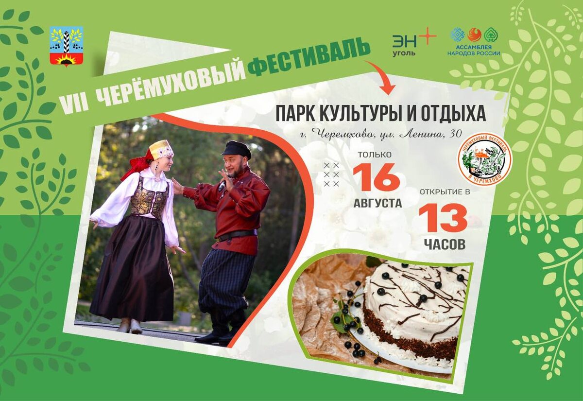 За эти годы Черемуховый фестиваль стал одной из визитных карточек города угольщиков. Все события фестиваля пройдут в Парке культуры и отдыха. Программа фестиваля на главной сцене парка: 13:00. Открытие фестиваля. 13:30. Гастро-битва (кулинарный поединок). 15:30. Мастер-класс от шефа Ёдгора Якубова. 16:30. Выступление ансамбля морской пехоты «Черные береты» (Калининград). 16:40. Выступление Татьяны Ярги (Иркутск). 17:00. Награждение победителей. Закрытие фестиваля. Программа в парке: 13:00-16:00. Кулинарный конкурс «Черёмуховое ассорти» (кондитерские, хлебобулочные изделия, напитки, варенья, джемы, конфитюры из черёмухи). 13:00-16:00. Конкурс рукоделия «Черёмуховое настроение» (ярмарка-продажа изделий декоративно-прикладного искусства, народных промыслов и сувениров). 13:00-16:00. Концертная программа с участием народных коллективов Иркутской области. 13:00-16:00. Интерактивная площадка («Заезжий двор», черемховские чайные традиции). 13:00-16:00. Литературная беседка («Черёмуховые грозд