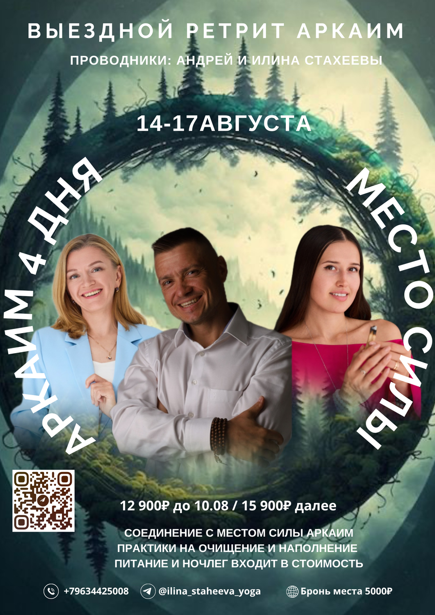 С 14 по 17 августа Андрей и Илина Стахеевы, семейная пара энергопрактиков, приглашают вас в особенное путешествие. Это не просто поездка – это глубокое погружение в себя, возможность очиститься от всего, что больше не служит вашему росту, и наполниться свежей энергией и благостным состоянием.