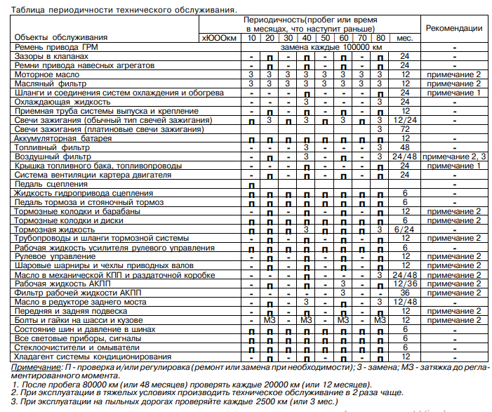 - Техническое обслуживание автомобиля Интервалы обслуживания Если Вы в основном эксплуатируете автомобиль при одном или более из нижеприведенных особых условий, то необходимо более частое техническое обслуживание по некоторым пунктам плана ТО.