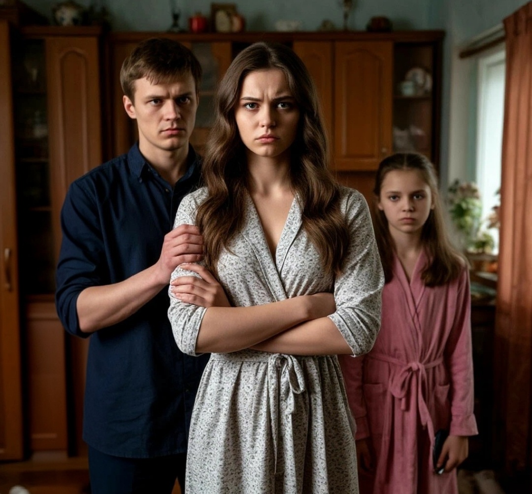 — Что за… — начала она, но тут из кухни вышел Дмитрий. Лицо у него было странное — виновато—решительное.