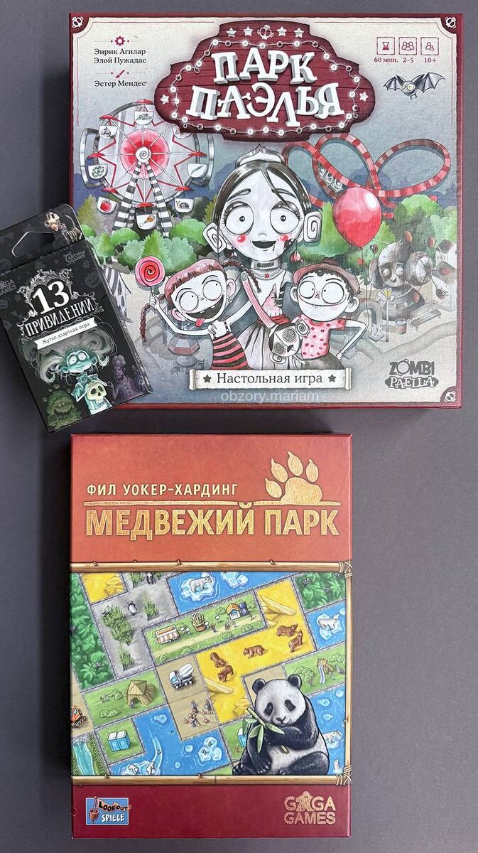 Всем привет! Текущие новости: 1. Обзор на «Битву подушками» готов, добавлю сегодня👌🏻 2. Обзор на «7 Чудес: Архитекторы» почти готов, но нужно снять один недостающий фрагмент. 3. Следующая тройка игр на фото к посту. Для тех, кому нравится тематика «Парка Паэлья» решила добавить «13 привидений»👻. А тем, кому пока рано или страшно, предлагаю отправиться в «Медвежий парк»🐻 4. Но я заранее приношу извинения перед всеми, кто очень ждёт обзор на Паэлью в августе - я задумала распродать часть игр (абсолютно новых и нет), так как место в шкафах закончилось, и игры уже просто лежат рядом в стопках, которые начинают расти всё выше и выше…🙈 Поэтому я планирую всё разобрать, подготовить и добавить в отдельную группу. Плюс, очень хочется завершить ряд других дел, которые давно откладываются. 5. А ещё…. obzory.mariam ✍🏻✅