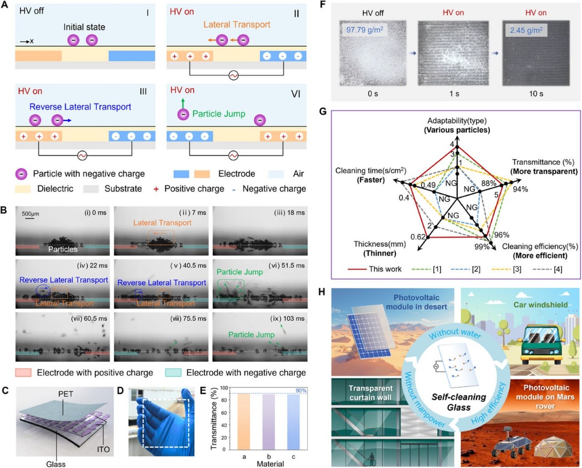 В Китае разработали стекло, которое само очищается от пыли, грязи и даже птичьего помета с помощью электрического поля. Оно справляется с органическими и неорганическими загрязнениями без воды и химии. Помимо этого, стекло защищает от повторного загрязнения: поле отклоняет заряженные частицы ещё в воздухе. В пыльных регионах или при сильных осадках это особенно полезно. Материал прозрачен, почти не влияет на освещённость и уже пригоден для массового производства — подойдёт для солнечных панелей, окон и автостёкол.