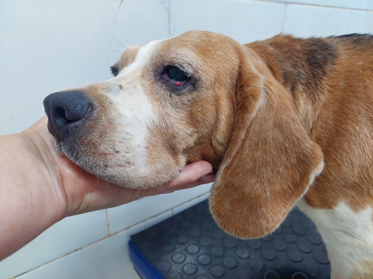 Анна совсем не может поднять голову, с трудом ходит, почти не опирается на левую заднюю лапу, испытывает сильную боль.