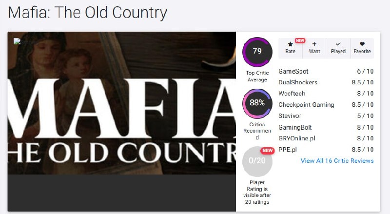 Mafia The Old Country получилась неплохой игрой, но в ней нет своей изюминки, следует из обзоров