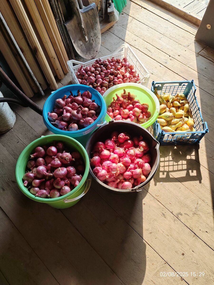 В этом году погода бьёт все рекорды и по холодному лету, и по количеству дождей, и по жаре в конце июля-начале августа (в наших северных широтах это уже начало осени, время сбора урожая и закрутки заготовок). В последнюю неделю июля стояла такая жара, которой не каждое лето бывает! А вот уже на следующую неделю обещал нам Коми гидрометеоцентр дождики (и они были, но очень слабенькие). Посмотрела я на свой лук: севок еще зелененький, а вот у семейного уже вся зелень засохла, поэтому было принято решение срочно его убирать, чтобы не замочить. Сижу, обрезаю лук, радуюсь урожаю, а тут соседка ко мне приходит и просит научить и объяснить как вообще понять, что лук можно уже убирать, что у него нужно обрезать и что с ним дальше делать. Стоит уточнить, что соседи у меня новые появились весной этого года - молодая семейная пара, но очень работящие. И пусть пока они ничего не умею и не знают, но зато очень хотят научиться всем огородным делам. А я как-то все уже на автомате делаю, и даже никогд
