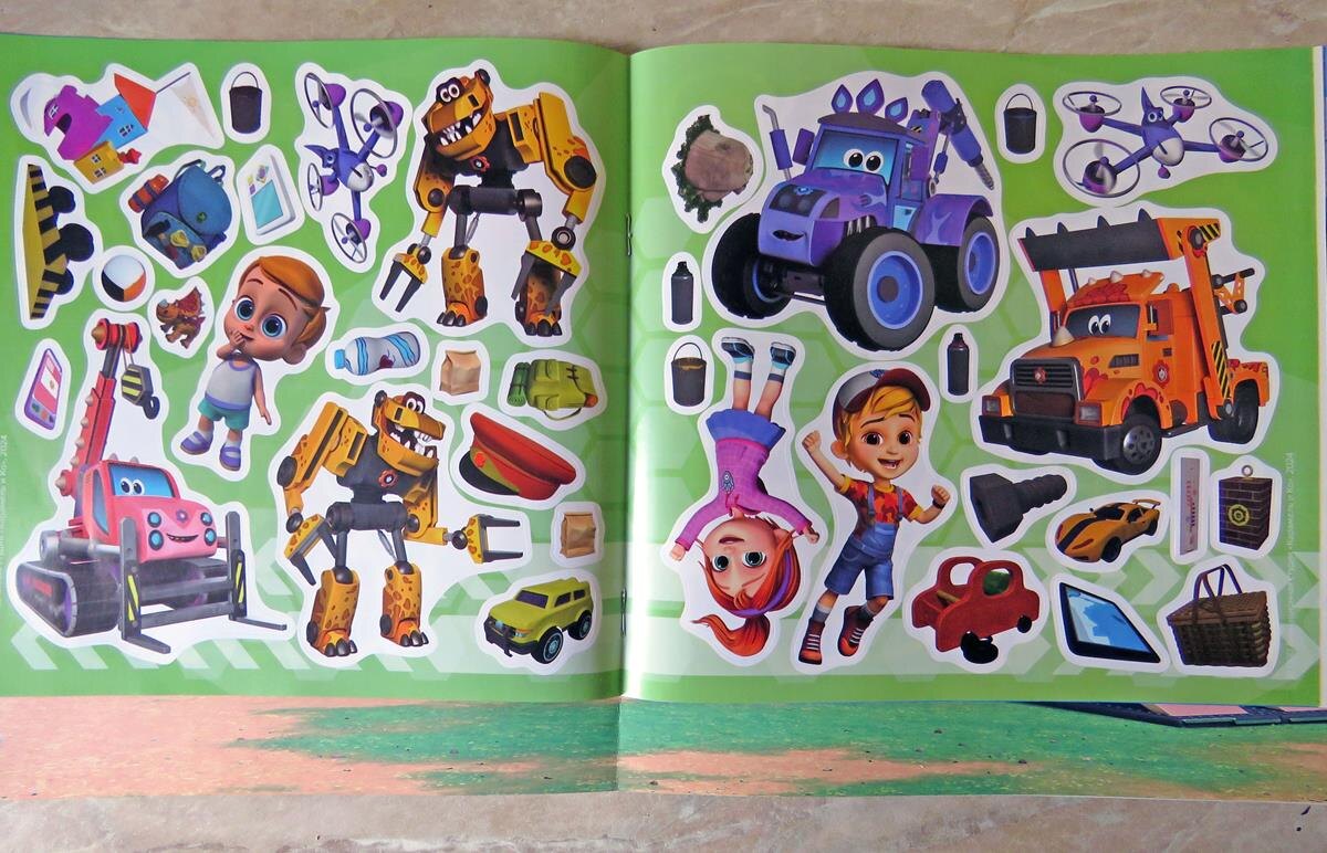 Темы самые разные. Мы выбрали альбом «Турбозавры. Спешим на помощь». Персонажи уже знакомы по мультипликационному фильму.
