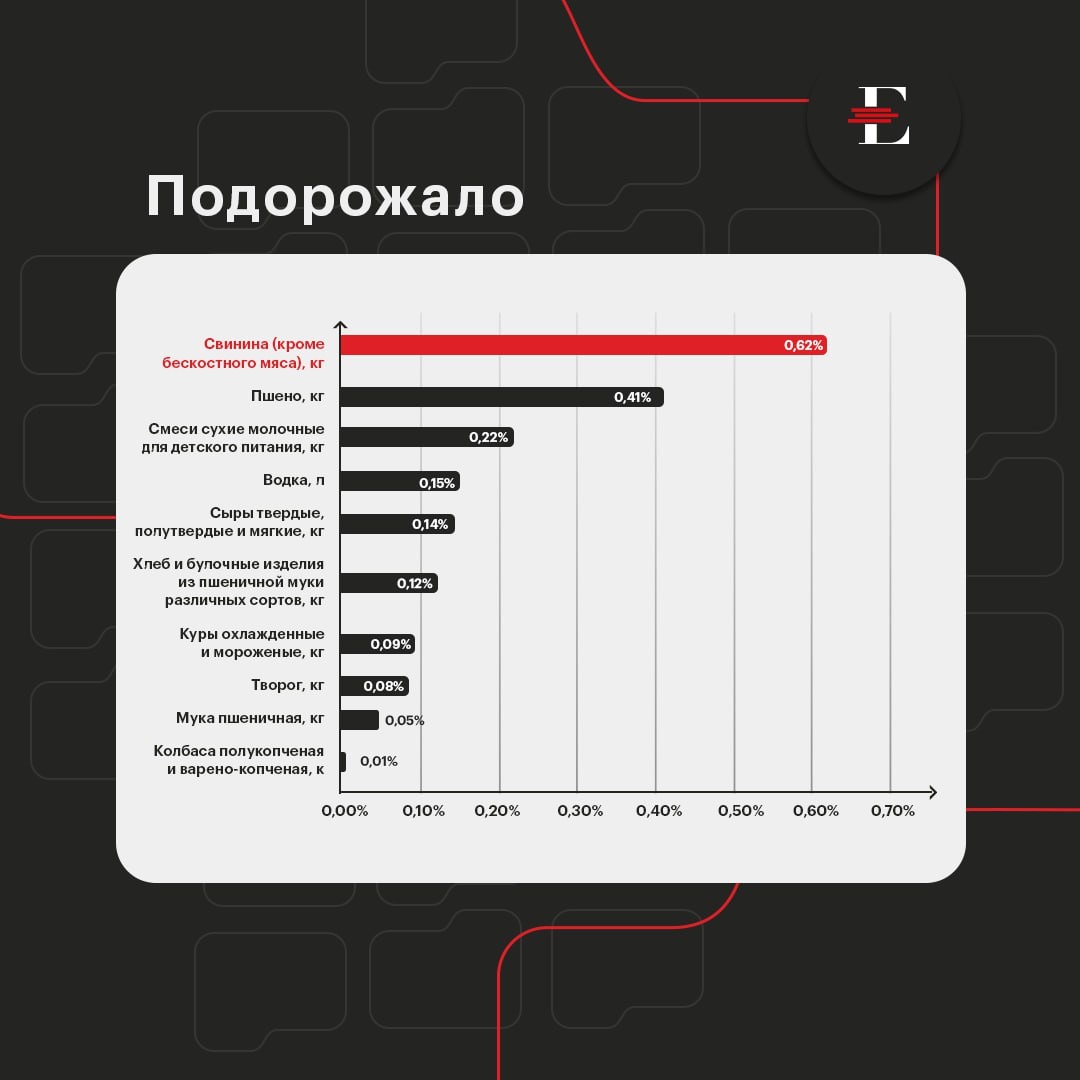 🐖 Больше всего выросли цены на свинину: +0,62%