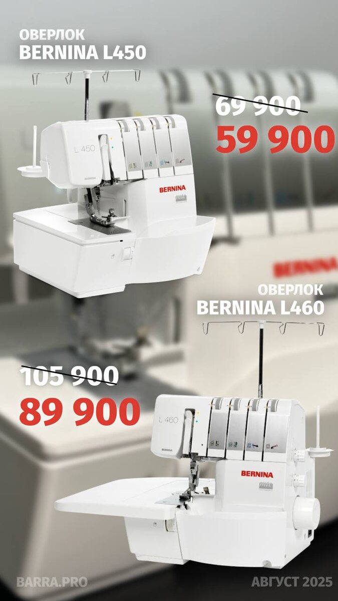 Поздравляем с покупкой! А главное, с исполнением мечты 🥰 Оверлоки BERNINA L450 и L460 самые популярные модели. И мы точно знаем, за что их любить: ✅ Количество операций Bernina L450 - 16 операций Bernina L460 - также 16 операций ✅ Комплектация У Bernina L460 расширенная комплектация. В неё входит приставной столик для увеличения области работы и коленоподъёмник. Вам не придётся постоянно поднимать лапку руками, достаточно одного простого движения коленом. ✅ Внутренний мир Bernina L460 работает тише, чем L450 за счёт двигателя постоянного тока. Также у L460 более плавный старт, бОльшая мощность, меньший расход электроэнергии 👛 Ах, да, оба оверлока обладают уникальной функцией MTC - это система микронатяжения нитей. С помощью регулятора на корпусе вы можете точно подстроить натяжение петлителя конкретно под вашу ткань. Очень удобно! Кстати, оба эти оверлока делают красивую строчку на любой ткани: от бельевой сетки до футера с начесом в несколько сложений 💅 ✅ Педаль В компле