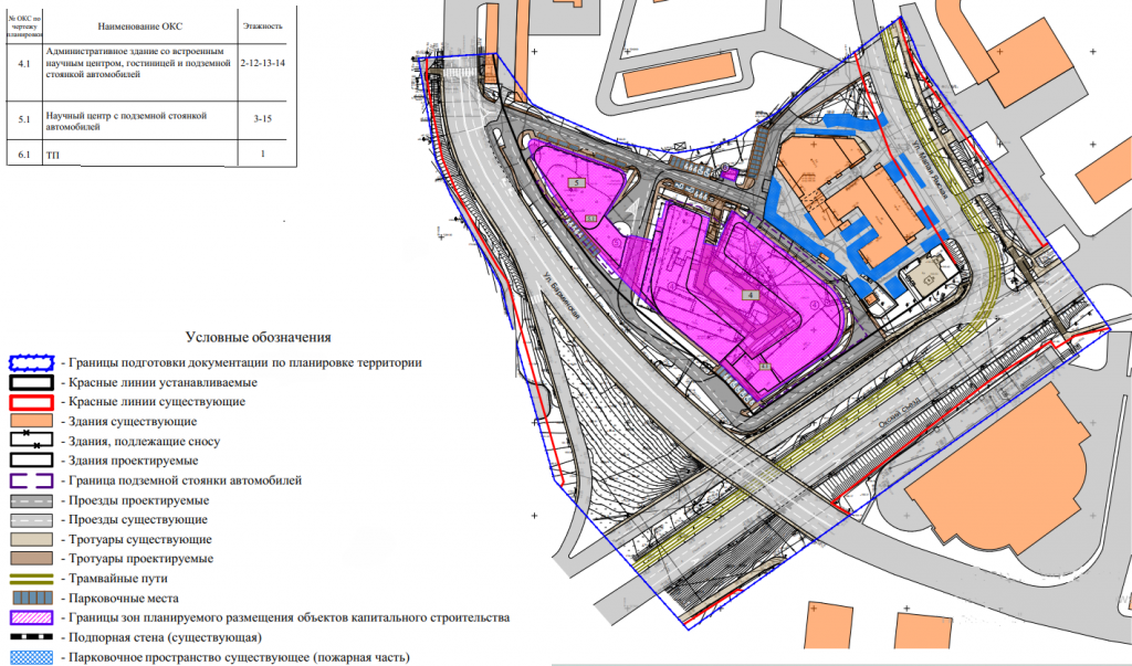 В одном здании высотой 3–15 этажей планируется разместить научный центр. Его площадь составит 18,7 тысячи квадратных метров, а площадь застройки — 1988 «квадратов». Предусмотрена подземная парковка на 69 мест.