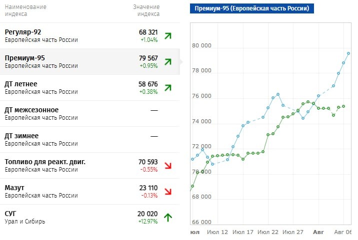 В ответ на пост 😱 Бензин в России четвёртый день подряд бьёт рекорд стоимости Сегодня тонна АИ-95 выросла в цене на 0,95%, до 79,6 тысяч рублей. За июль топливо уже подорожало на 15%, АИ-92 — на 7%, дизель — на 3%. Следует из данных торгов на СПбМТСБ. #Нефть @if_news