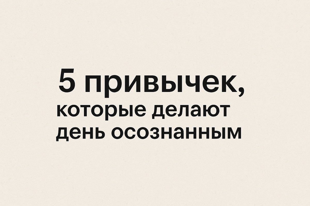 В мире, где всё стремится к скорости, осознанность становится тихой роскошью. Это не про медитацию на вершине горы, а про умение быть «здесь и сейчас» — в обычном дне, среди дел и забот. Осознанный день — это не идеальный день, а день, прожитый с вниманием к себе и происходящему. Ниже — 5 привычек, которые помогут тебе включить осознанность в повседневность. Перед тем как взять в руки телефон, закрой глаза и задай себе три вопроса: Эта простая практика занимает 2–3 минуты, но помогает настроиться на себя, а не на внешний шум. Ты начинаешь день не с реакции, а с выбора. Это особенно важно, если впереди насыщенный график — внутреннее сканирование помогает задать тон и снизить тревожность. Запиши утром одно намерение на день. Не цель, а именно намерение — например: «Сегодня я выбираю быть терпеливым», «Я хочу замечать красоту вокруг». Это якорь, который возвращает тебя к себе в течение дня. Можно добавить короткую фразу-мантру или цитату, которая вдохновляет. Такой дневник не треб