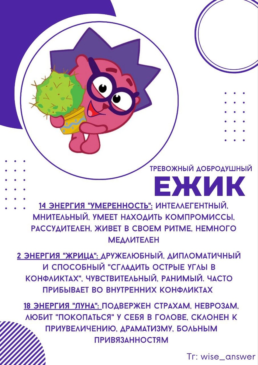 Характеристика энергий Смешариков: Ежик