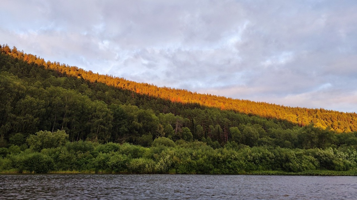 🌅 Почти незаметно, словно в замедленном танце, солнце начинает опускаться к горизонту. Лучи его теплого, золотистого света коснулись верхушек деревьев, стоящих вдоль берега Чусовой, и заиграли в их кронах, создавая причудливую игру света и тени. Это было не просто светило на небосводе, а настоящий живой гигант, приветливо прощающийся с миром перед грядущей ночью. В первый момент казалось, что солнце вот-вот погрузится в лес, но оно словно задержалось, позволяя взгляду проникнуть глубже в эту изумительно сказочную атмосферу.