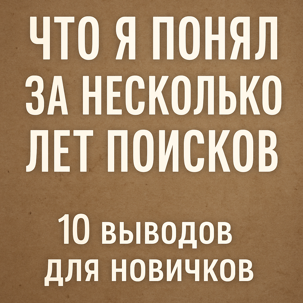 Начинал как все — с азарта, желанием «найти клад» и кучей ошибок. Прошло несколько лет, десятки выходов, сотни находок. Делюсь тем, к чему пришёл. Если ты только начинаешь — возможно, сэкономит тебе время, силы и деньги.
