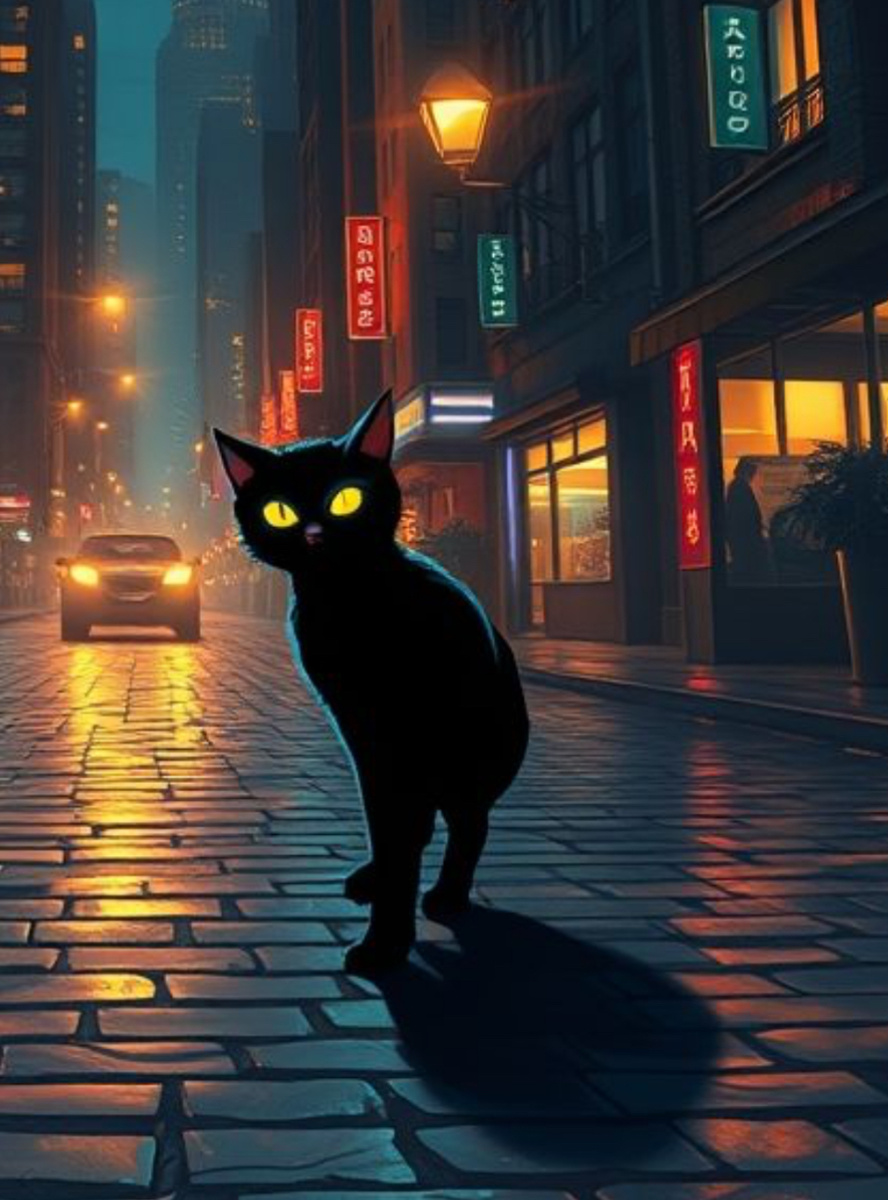 Город спал. Не тот шумный, кричащий город, что толкается локтями днём, а другой — тихий, полупрозрачный, с домами, отливающими синевой, и улицами, которые плутали не столько в пространстве, сколько во времени. Бездомный кот, старый и мудрый, как все коты, знавшие вкус одиночества, сидел на парапете моста. Он вылизывал лапу, не обращая внимания на лунные блики в воде, пока не услышал шёпот: — Ты видел моего мальчика? Рядом стояла тень — не призрак, не сон, а именно тень, только… без человека. Она была нечёткой по краям, будто её стёрли в тех местах, где когда-то к ней прикасались. Кот перестал вылизываться. — Он потерял тебя? — Нет, — ответила тень. — Это я потеряла его. Он перестал смотреть по сторонам. И тогда кот вспомнил, как раньше этот мальчик останавливался на мосту, чтобы покормить голубей, как смеялся, когда ветер срывал с него шапку, как однажды, совсем маленький, пытался поймать солнечного зайчика на стене. Но потом что-то изменилось. Он начал ходить быстрее,
