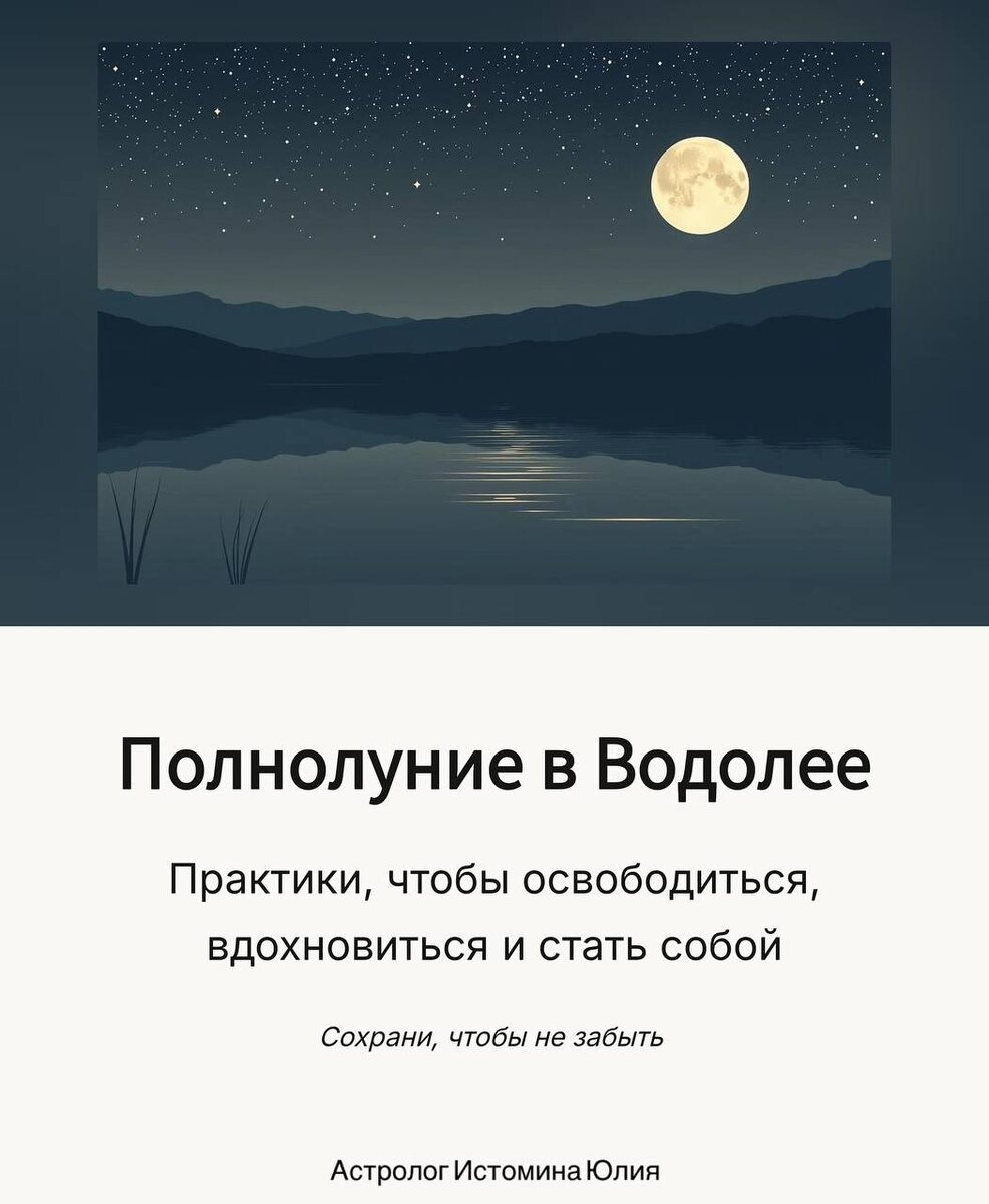 Оно про свободу быть собой, про честность с собой, про внутреннюю силу и свежий взгляд на жизнь. Если ты чувствуешь: усталость от чужих ожиданий, желание перемен, тягу к свободе или просто хочешь почувствовать опору внутри себя, эти практики на Полнолуние для тебя 💜 Листай карусель и выбирай то, что отзывается. Бережно поддержи себя в эти дни. А если хочется глубже разобраться в своих чувствах и планах, я рядом. Запишись на личную консультацию, написав мне в личные сообщения 📩 С любовью и поддержкой твой личный астролог Юлия Истомина 💜