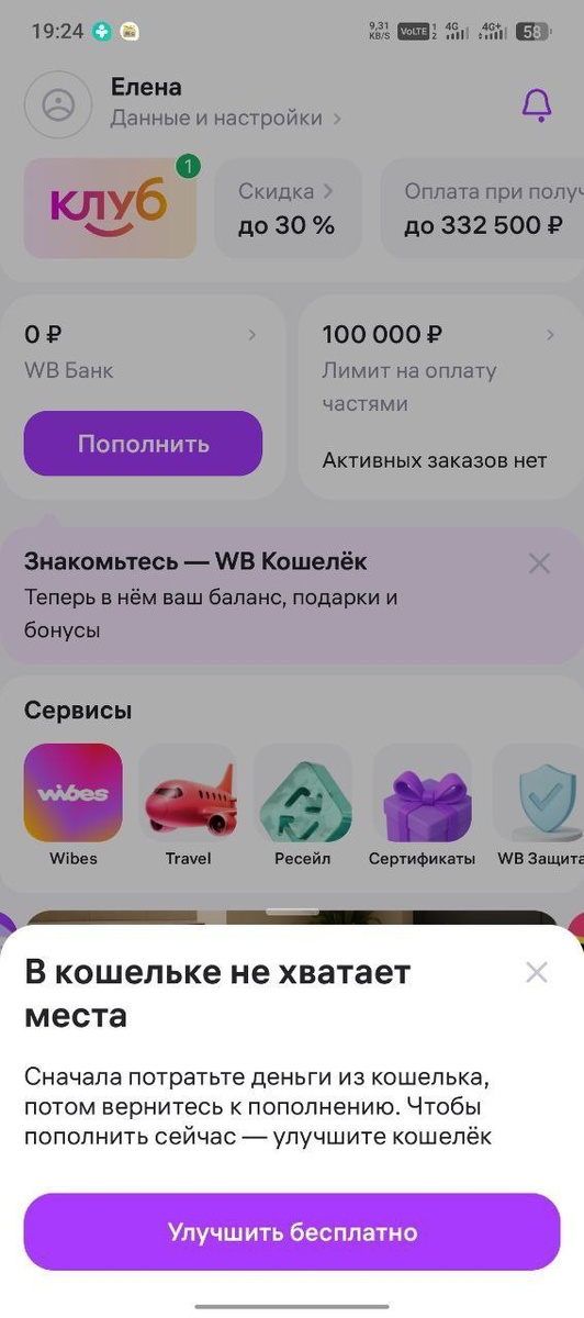 Здравствуйте!Что это значит в кошельке не хватает места?Ни разу не пользовался кошельком,там 0 на счету ,хотел воспользоваться пишет это