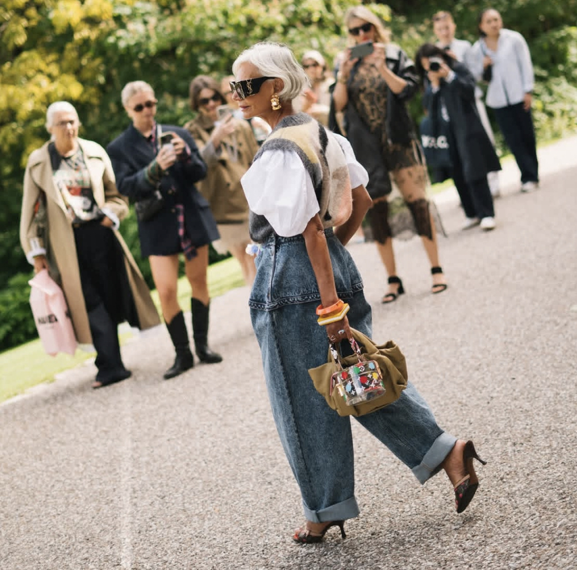 Сегодня пятница, и я предлагаю посмотреть на модниц прекрасного зрелого возраста. А смотреть мы будем на знаменитых инфлюэнсеров с разных точек мира. Давайте сразу обозначим пару моментов. Конечно, они очень много работают над собой и своим телом, чтобы держать себя в такой форме. Главное — не сравнивайте себя с ними, просто вдохновляйтесь! Многие образы я вижу и на пышных формах, да и в целом всё можно адаптировать под себя. Микротренд этого лета, который отлично прижился и в моем гардеробе. Показывала вам свои любимые браслеты с Алиэкспресс, и многие заказали себе (если что, все ссылки есть в моем ТГ-канале). Некоторые думают, что с возрастом женщина должна обязательно перейти на драгоценные металлы. Да никому мы ничего не должны, конечно. Убираем в сторону этот навязанный эйджизм, оставим его для тех, кто хочет комплексовать. А мы не хотим. Давайте рассмотрим образ выше. Мини можно заменить на миди или макси, образ от этого хуже не станет. Вы можете взять белое или кремовое пла