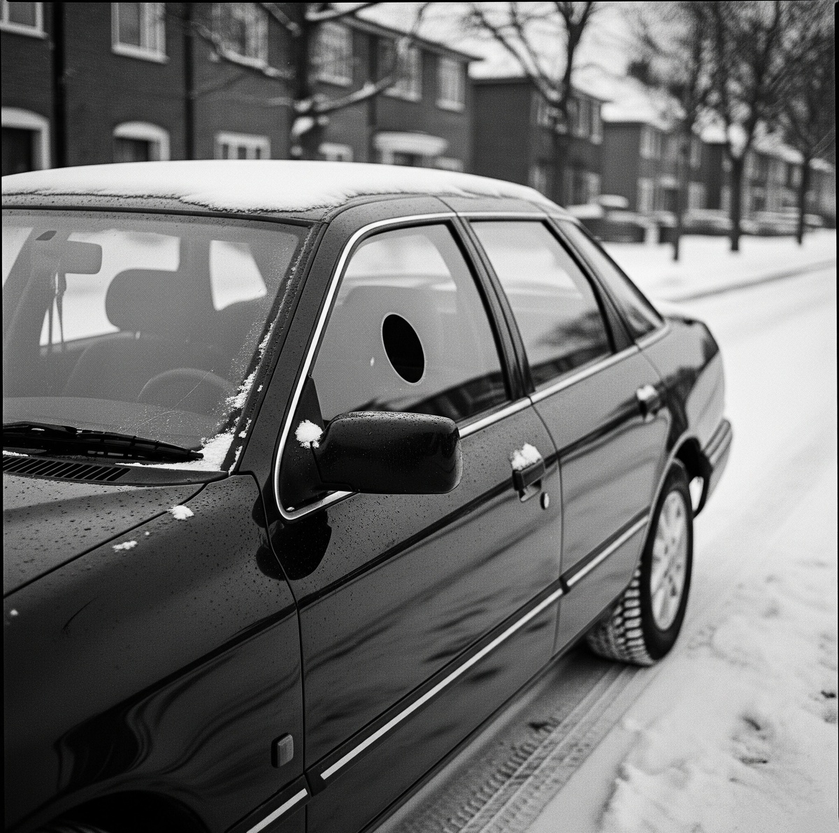 Но однажды утром жильцы заметили странность. В пассажирском стекле появилось идеально круглое отверстие диаметром около десяти сантиметров. Не было ни трещин, ни осколков на земле. Казалось, кто-то вырезал кусок стекла ювелирным инструментом.
