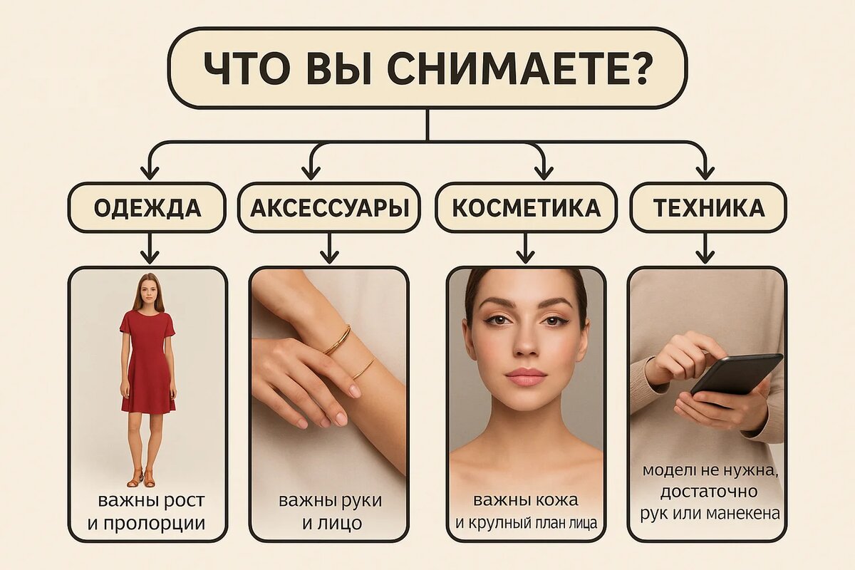 👉 Совет: не подбирайте «универсальную» модель — подбирайте под продукт. Фото — как обложка книги: читатель должен сразу понять, о чём история.