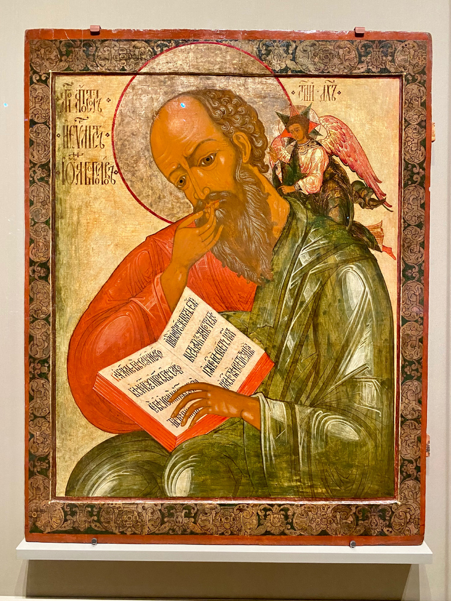 Совсем небольшая и очень ценная коллекция иконописи в залах Зимнего дворца выглядит конечно явлением инородным. Прекрасные работы древних мастеров Ярославля и Ростова, Новгорода и Пскова, Кириллова и Москвы как-то совсем не вяжутся с интерьерами имперского Петербурга, но так уж сложились извилистые пути нашей отечественной истории… После революции, в годы неуемной активности «воинствующих безбожников», правительством большевиков было принято решение о передаче «предметов религиозного культа», которые могли иметь художественно значение, в музейные фонды. Хотя список таких фондов был предельно краток попал в него и Эрмитаж. Ему в этом деле была отведена далеко не центральная роль, но тем не менее. Конечно «предметы культа» собирали не просто из любви к истории и культуре. В годы первых пятилеток появились планы по продаже икон за границу. К счастью, большого спроса на такой товар тогда еще не было. Перед войной в Эрмитаже появился отдел истории русской культуры, а после войны он ст