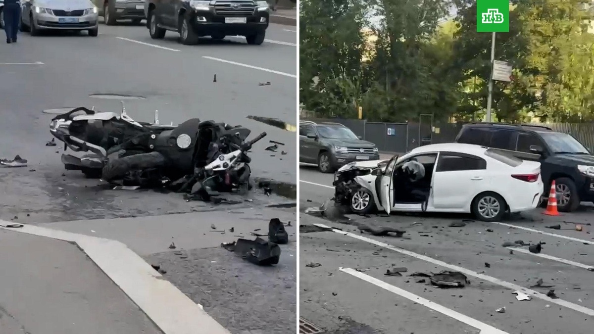 [ Смотреть видео на сайте НТВ ] В центре столицы столкнулись легковушка и мотоцикл. ДТП произошло в Москве на пересечении Шмитовского проезда и Стрельбищенского переулка. Столкнулись автомобиль Kia и мотоцикл, байкер погиб. На месте работают сотрудники ГАИ. По материалам: телеграм-канал «Госавтоинспекция Москвы». [ Смотреть видео на сайте НТВ ]