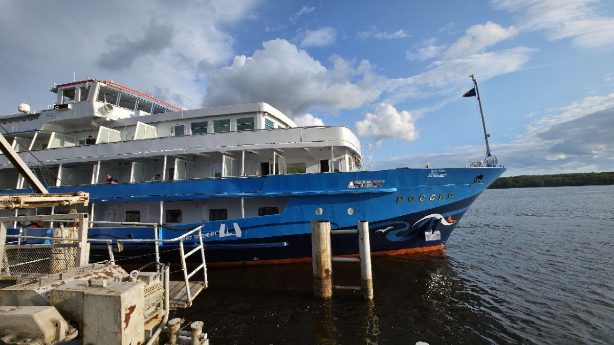 Вот РОССИЯ отправляется в копилку))) Пассажирский теплоход РОССИЯ 🇷🇺🇷🇺🇷🇺 в Череповце, на час раньше отправляется из этого чудного города🏛 📆 - прямой эфир #РечнойФлотВолгоград #Теплоход #теплоходРоссия