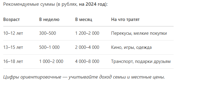 🔹 Как: Выдаете деньги раз в неделю/месяц — тратит на свое усмотрение.