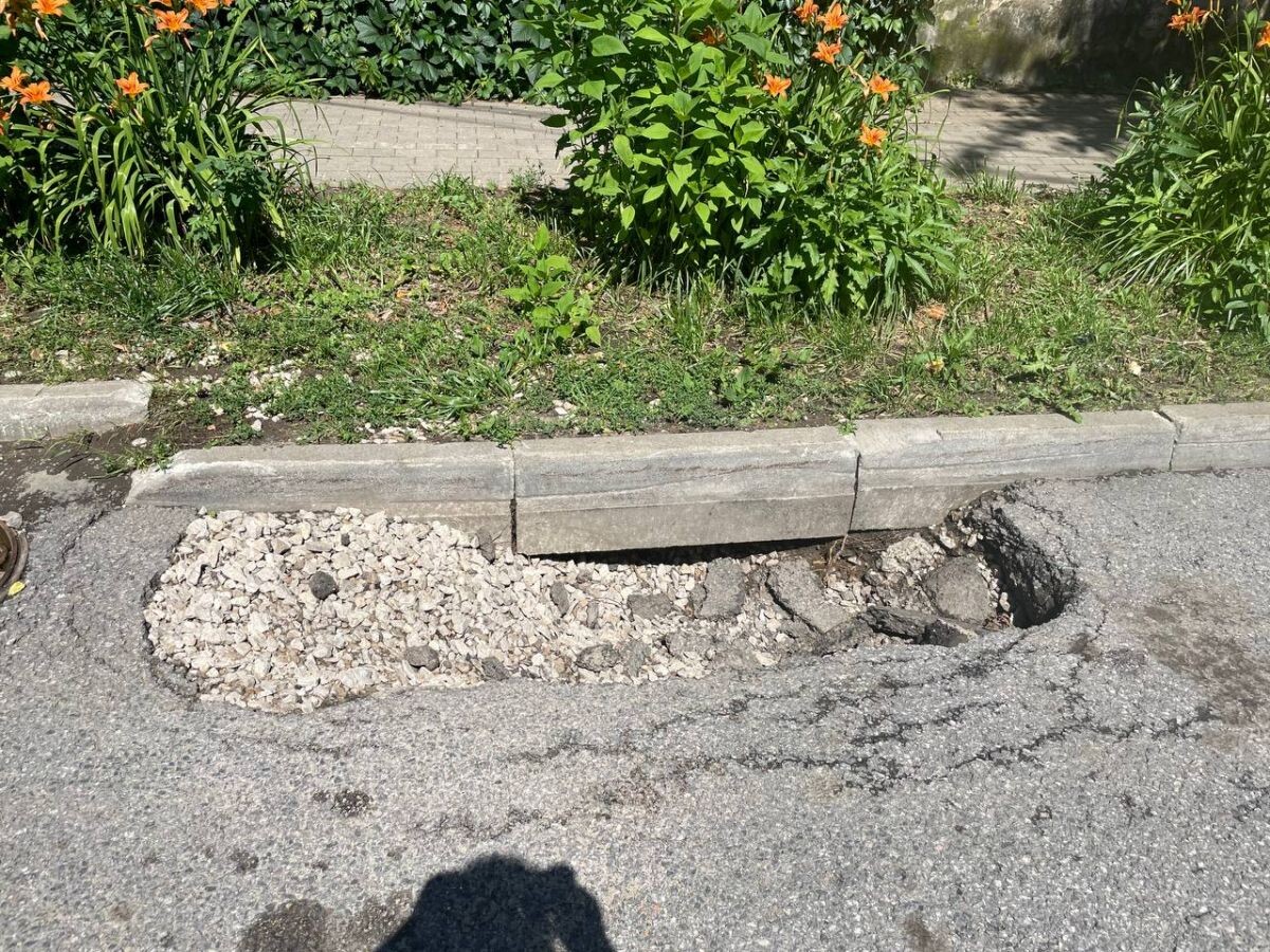 На улице Дарвина, 8 в Калуге после дождя образовался провал в асфальте. Жители обратились за ремонтом в соцсетях, но получили ответ о переносе сроков.