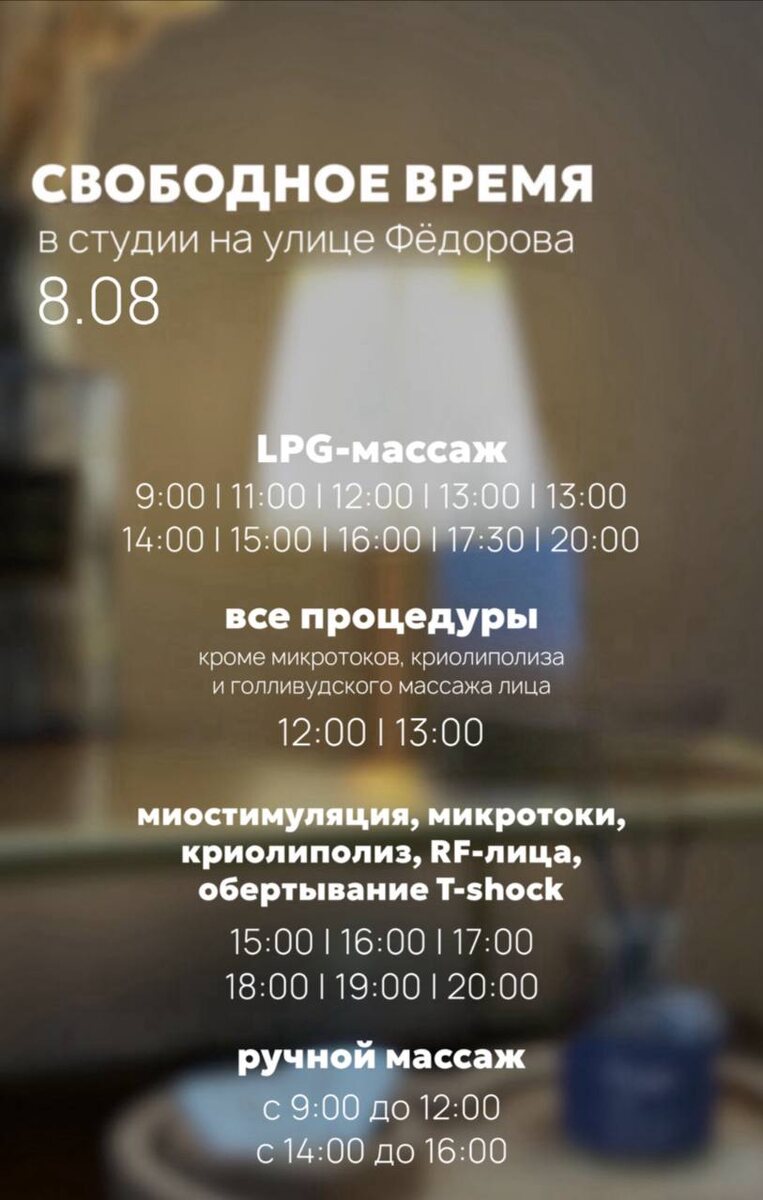 СВОБОДНОЕ ВРЕМЯ НА ФЁДОРОВА 8.08 • ONLINE запись • WHATSAPP Ждём вас к нам на процедуры 🤍