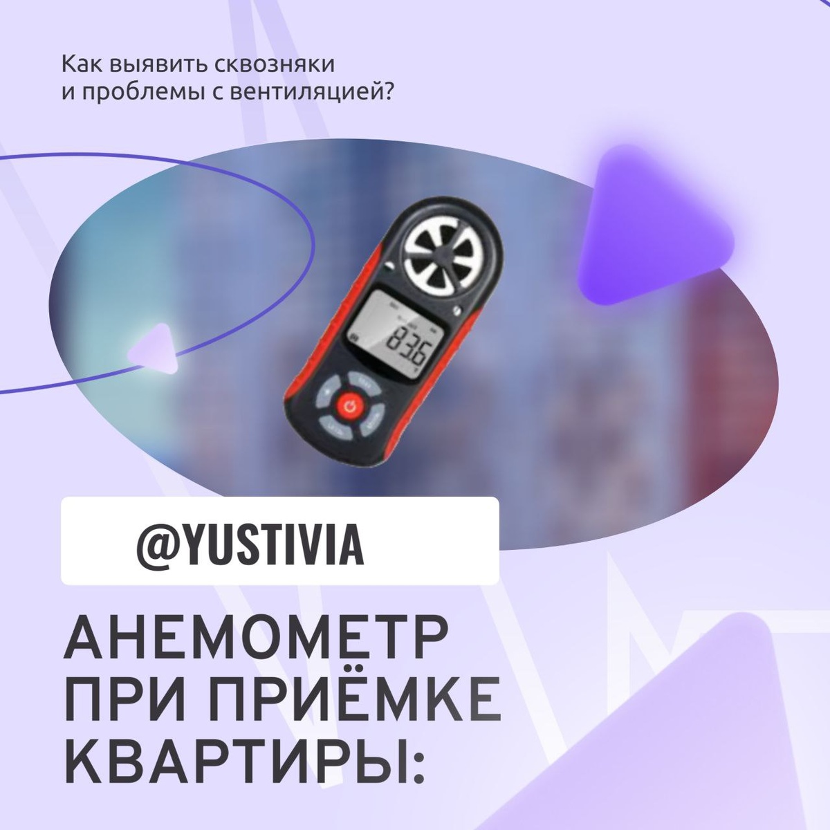 Анемометр при приёмке квартиры: как выявить сквозняки и проблемы с вентиляцией? 🔑 ➿➿➿➿➿➿➿➿➿ Покупая квартиру, важно проверить не только очевидные вещи (отделка, сантехника, электрика), но и микроклимат. Один из ключевых приборов для такой проверки — анемометр. ➡️Что такое анемометр и зачем он нужен? Анемометр — это профессиональный инструмент, который измеряет: ➖Скорость воздушных потоков (чтобы выявить сквозняки) ➖Направление ветра (показывает, откуда дует) Как анемометр помогает при приёмке квартиры? 1️⃣ Обнаружение сквозняков – прибор выявляет даже слабые потоки воздуха из-под окон, дверей или через щели в стенах. 2️⃣ Проверка вентиляции – если воздух в квартире застаивается (скорость ниже 0,1 м/с), это может привести к сырости и плесени. 3️⃣ Комфортный микроклимат – оптимальная скорость воздуха в жилом помещении 0,1–1,2 м/с. Если выше — будут сквозняки, если ниже — духота. Что делать, если анемометр выявил проблемы? ➖При слабой вентиляции – прочистить воздуховоды или устан