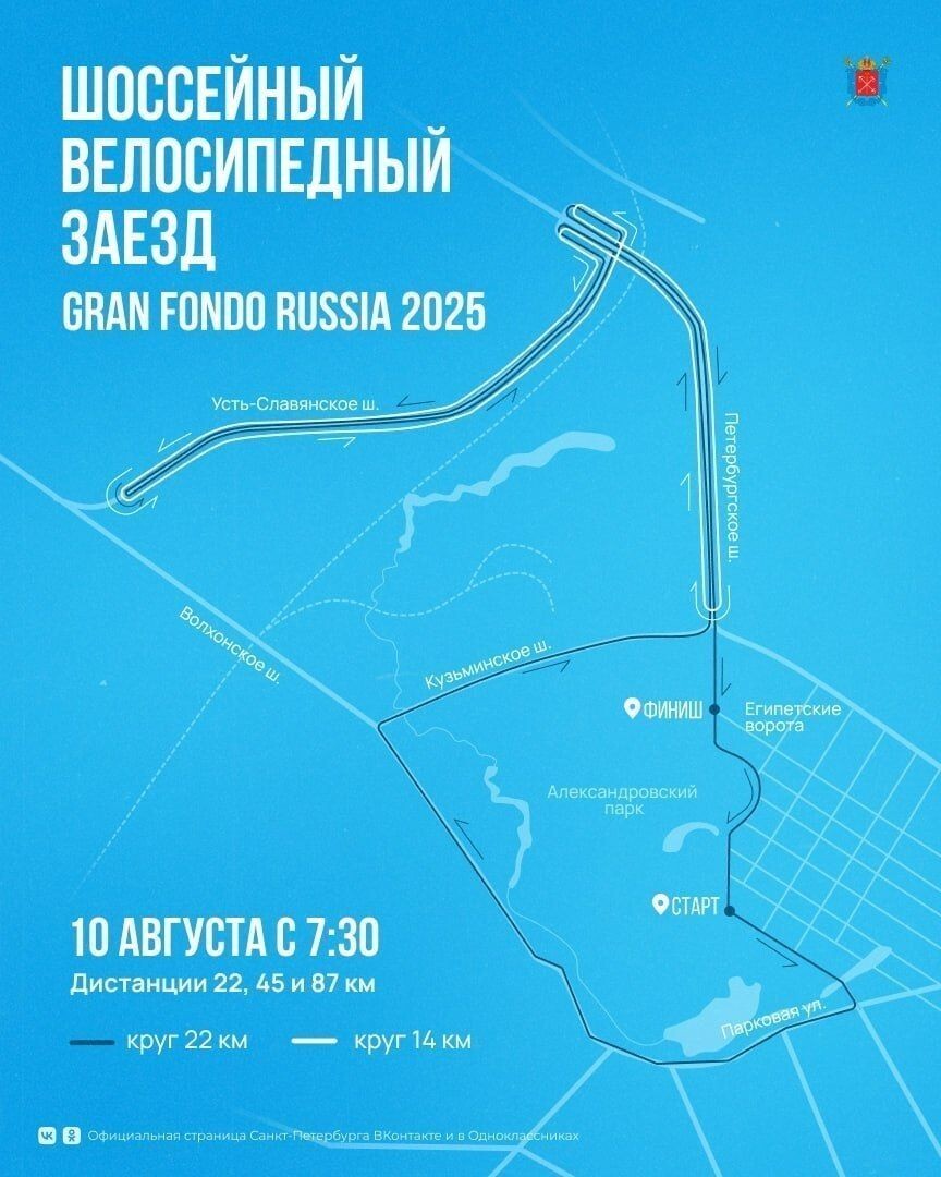 Велозаезд всемирной серии Gran Fondo ограничит движение в Царском Селе. Мероприятие состоится в это воскресенье, 10 августа. Об ограничениях рассказали в Комитете по физической культуре и спорту. «Сотни профессионалов и любителей велоспорта встретятся на одной трассе, чтобы преодолеть 22, 45 и 87 километров. Маршрут пролегает по историческим улицам Пушкина, в том числе у Екатерининского дворца и Египетских ворот», – сказано в сообщении. Также комитет опубликовал в своем телеграм-канале карточку с маршрутами велозаезда. С полным списком всех ограничений можно ознакомиться здесь. Горожан и гостей Северной столицы призвали учитывать информацию, планируя свои маршруты.