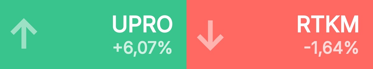 🔺 Топ-10 лидеров роста среди крупнейших акций: Юнипро • 1,66 ₽ • 6,07% Новатэк • 1 127 ₽ • 4,00% ЭЛ5-Энерго • 0,49 ₽ • 3,43% Аэрофлот • 60,91 ₽ • 3,40% Хэдхантер • 3 509 ₽ • 2,33% Татнефть п • 658 ₽ • 2,30% НЛМК • 117 ₽ • 2,23% Татнефть • 703 ₽ • 2,11% Газпром • 133 ₽ • 1,98% Роснефть • 447 ₽ • 1,96% 🔻 Топ-10 лидеров падения среди крупнейших акций: Ростелеком • 67,70 ₽ • -1,64% Лента • 1 717 ₽ • -1,44% Инарктика • 617 ₽ • -1,28% Циан • 587 ₽ • -0,98% Селигдар • 48,30 ₽ • -0,78% VK • 329 ₽ • -0,70% КЦ ИКС 5 • 2 997 ₽ • -0,63% Банк ВТБ • 79,12 ₽ • -0,60% Ренессанс • 128 ₽ • -0,53% Европлан • 646 ₽ • -0,51%