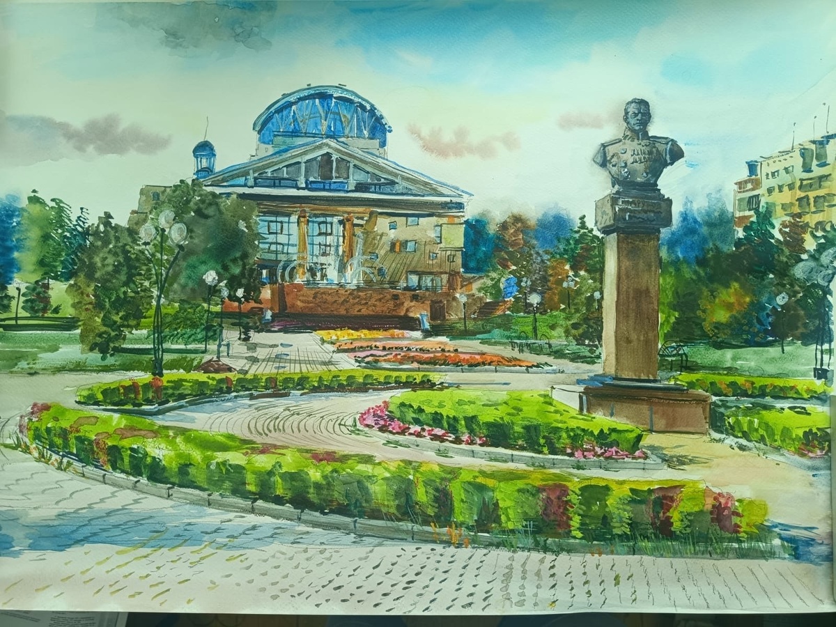 Театральный сквер в исполнении саровского художника Анатолия Стрелкова.