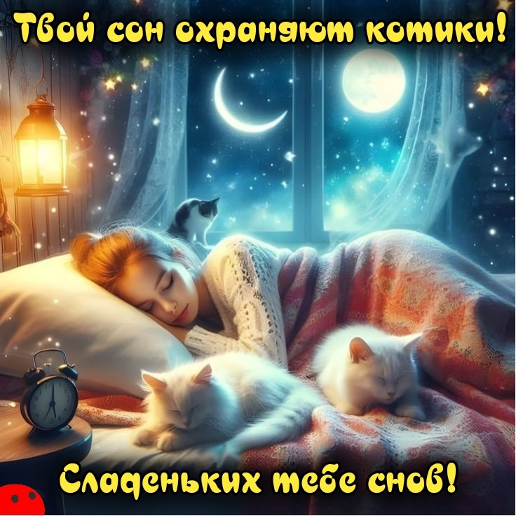 Твой сон охраняют котики 🐈 Сладеньких тебе снов! 🌙