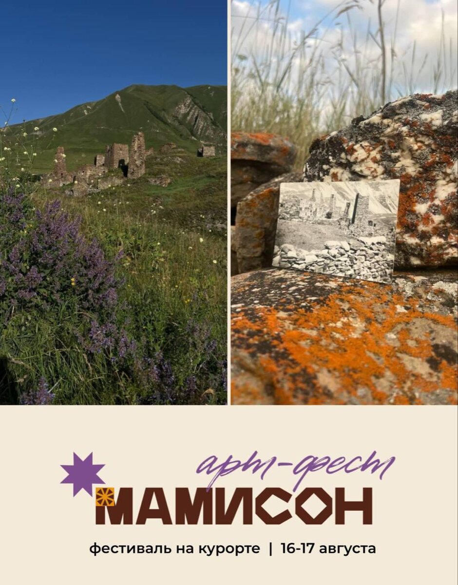 👨👩👧👦 На курорте «Мамисон» пройдет первый арт-фестиваль. Как рассказал в своем телеграм-канале Сергей Меняйло, 16 и 17 августа гостей ждут лекции, арт-объекты, прогулка по курорту и древнему селу Лисри под аудиоспектакль, ярмарка локальных брендов и мастеров из самых разных уголков СКФО и многое другое. Кульминацией фестиваля станет вечернее светомузыкальное шоу на фоне древних башен селения Лисри. Световое представление дополнит выступление нашей местной группы, исполняющей пост-традиционную осетинскую музыку. 📰 Вести Алания | Владикавказ