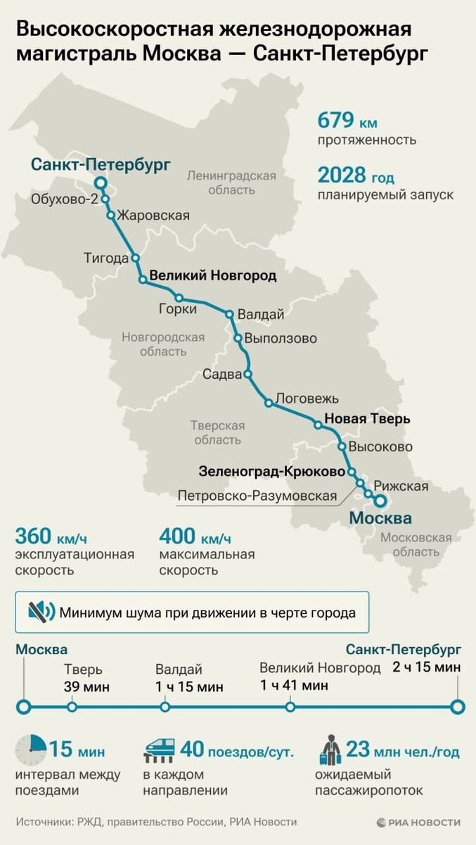 Московское метро официально продлят до Питера — ну, почти ВСМ Москва – Санкт-Петербург включили в план развития столичного рельсового каркаса. Поезда будут летать со скоростью до 400 км/ч и довозить пассажиров за 2 часа. Первый этап собираются запустить уже в 2028 году — это будет самый быстрый железнодорожный маршрут в стране.