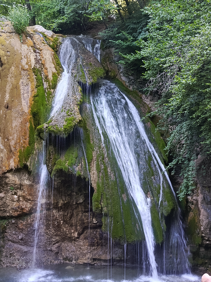 Летом в Крыму жарко, в целях противопожарной безопасности большинство троп бывает закрыто, и не очень приятно по жаре гулять по открытой местности. Прогулка к Джур-Джуру по буковому лесу- один из вариантов, когда можно и прогуляться по горной местности, и не перегреться. Находится близ села Генеральское, до которого можно доехать на своём транспорте. Далее подъём в гору до начала тропы можно преодолеть или пешком, или на уазиках (местные предлагают свои услуги). Мы брали организованную экскурсию, уазики входили в стоимость, ехали всего 7 минут. Вход на тропу бесплатный, хотя раньше брали экосбор- водопад находится в ущелье Хапхал (в переводе-"волчья пасть") на территории заказника Начало тропы Отсюда до водопада идти минут 15, дорога оборудована деревянными настилами и лестницами, есть места для отдыха с лавочками и урнами, так что до самого водопада дойдут люди любого уровня и физической подготовки, листайте Такие удобства сделаны за последние несколько лет, во время моего последнего