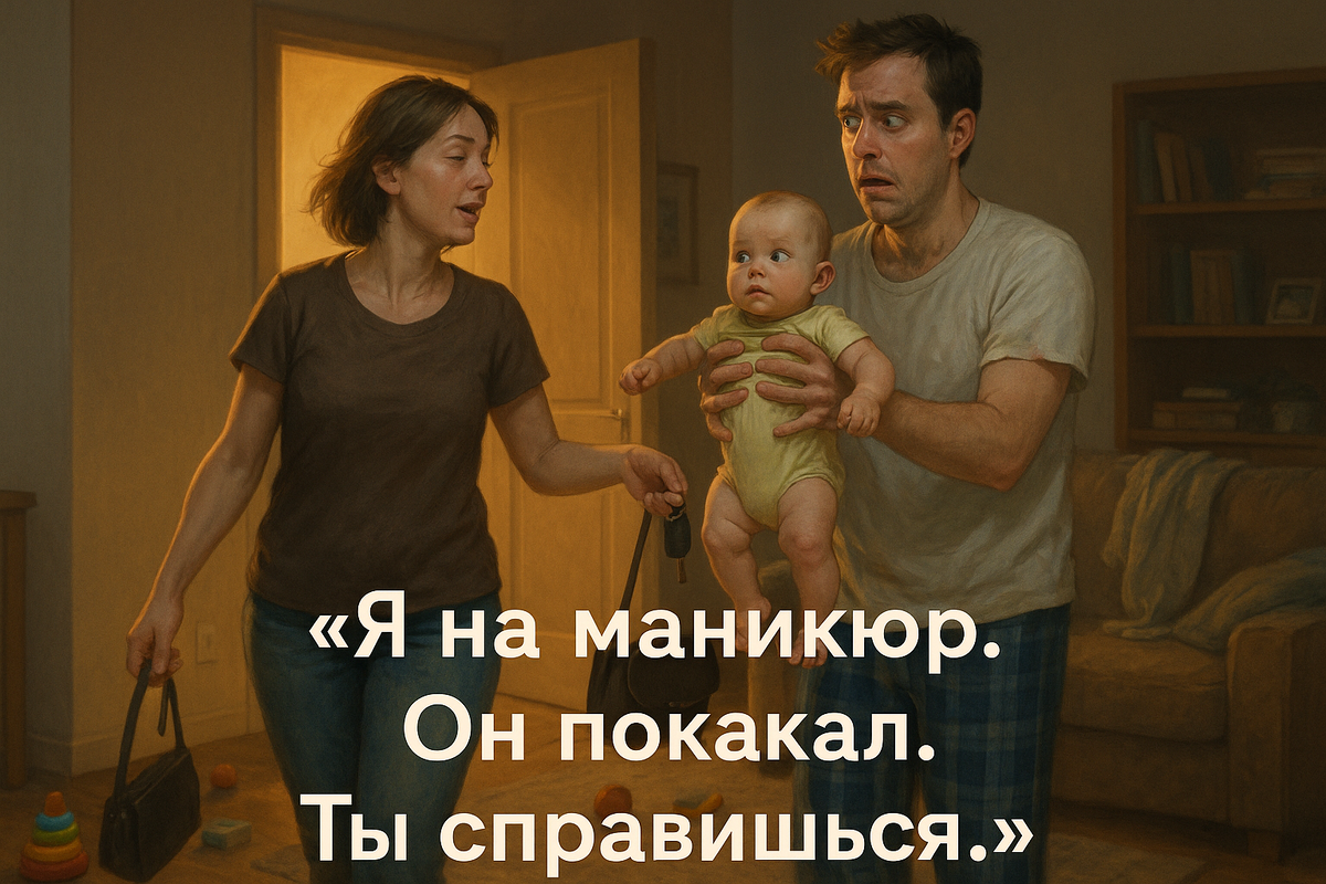 Это случается внезапно. Ты просто идёшь на кухню, чтобы налить чай. А возвращаешься — и мама тебе говорит: «Я на маникюр. Он покакал. Ты справишься.»