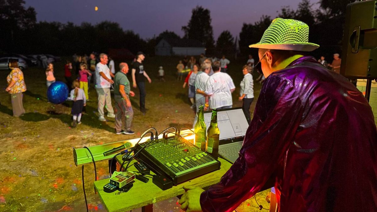 Ретро дискотека в Красаевке. День 1. Специально для дискотеки мы подготовили стол, на котором разместили оборудование. На нём компактно разместились ноутбук, микшерный пульт, новая светомузыка нескольких видов, а главным новшеством стала дым-машина, которая добавила неимоверной атмосферы в происходящем, то и дело вылавливая световые лучи. Но за этим всем оборудованием необходимо было следить, а ещё и соблюдать настроение дискотеки, подбирая давно знакомые хиты 80-90. С этим мастерски справился наш давний умелец, артист, актёр, активист и активный участник мероприятий сельского клуба Ермачков Андрей. Более того, Андрей серьёзно подошёл к делу и подобрал шикарный наряд для этого вечера, ведь сам дрескод мероприятия был объявлен заранее. Поэтому особенно приятно было наблюдать за нашими танцующими в ярких одеждах. Справились 🤗