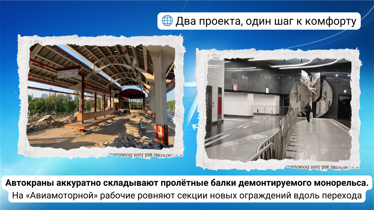 ⚙️🚇 Инфраструктурный дубль: разборка монорельса и ограждения «Авиамоторной»