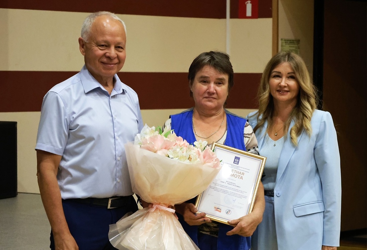 Встреча началась с поздравления с юбилеем предцехкома, маляра участка ремонта зданий и сооружений Автомобильного завода Анисы Минзуфаровны Нечунеевой. Ильдар Шамилов вручил ей почётную грамоту и выразил слова благодарности за многолетний добросовестный труд и личный вклад в развитие профсоюзной организации. Далее Ильдар Асхатович передал профсоюзной организации Автомобильного завода благодарственное письмо от воинской части за поддержку бойцов СВО. Он отметил, что с начала специальной военной операции ПАО "КАМАЗ" активно оказы