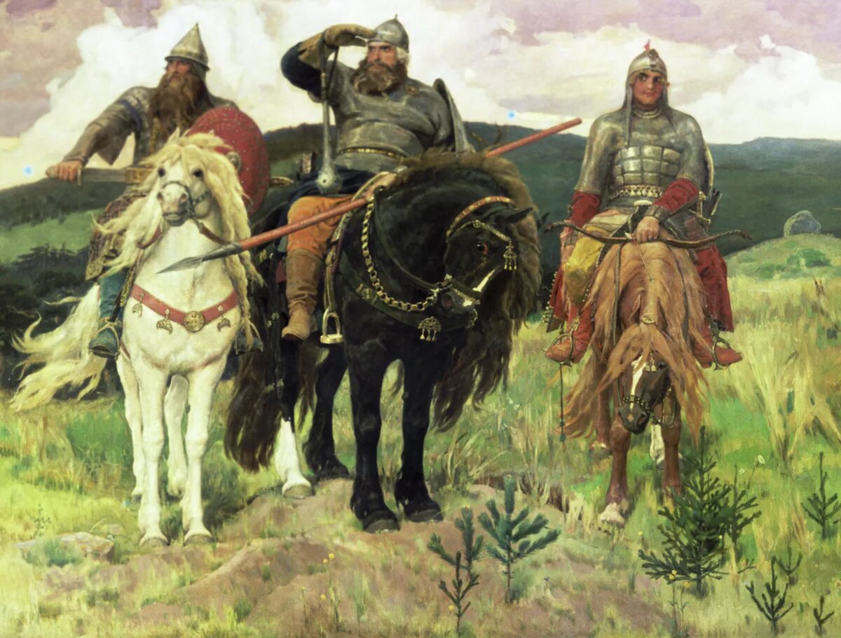 Как квинтэссенция многопланового содержания слова «богатырь», вкладываемого русскими сказителями (баянами) в это понятие, оно исчерпывающе выражено, как это не покажется странным, живописцем Виктором Васнецовым в написанной им картине «Богатыри». Оговорюсь, что художник не просто созерцателю, а вдумчивому исследователю его произведения, намекал, что не следует относиться всерьез к его «Богатырям» как к источнику хотя бы мало-мальски достоверных исторических, этнографических и военных сведений о русских «богатырях». Почему, - дальше станет понятно. Тем более, грубейшей ошибкой является поиск в картине зашифрованных величественных символов мощи Руси и какого-то её «особого Божественного статуса» среди других народов, населяющих нашу Землю.