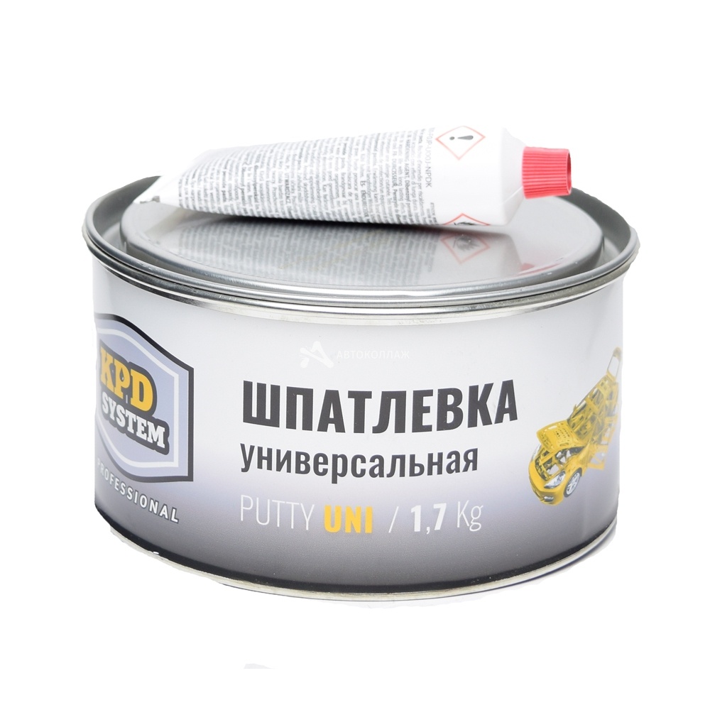 Универсальная автомобильная шпатлевка — это универсальный состав, предназначенный для широкого спектра ремонтных работ на автомобилях. Благодаря своей универсальности этот материал пользуется большой популярностью среди автолюбителей и профессионалов автосервиса. Основные характеристики универсальной шпатлевки: 1. Состав: - Основной компонент — полиэфирная смола, обеспечивающая высокие эксплуатационные качества. - Наполнители: различные минеральные добавки и пластификаторы для улучшения свойств. 2. Физические свойства: - Плотность: Средняя, около 1,6–1,8 г/см³. - Эластичность: Хорошая эластичность, позволяющая избежать растрескивания при механических воздействиях. - Адгезия: Высокое сцепление с различными материалами, включая металл, пластик и стекло. 3. Эксплуатационные показатели: - Влагостойкость: Неплохая устойчивость к влаге, однако не рекомендуется длительное воздействие воды. - Термостойкость: Способность выдерживать температуры от −30°С до +80°С. - Скорость застывания: