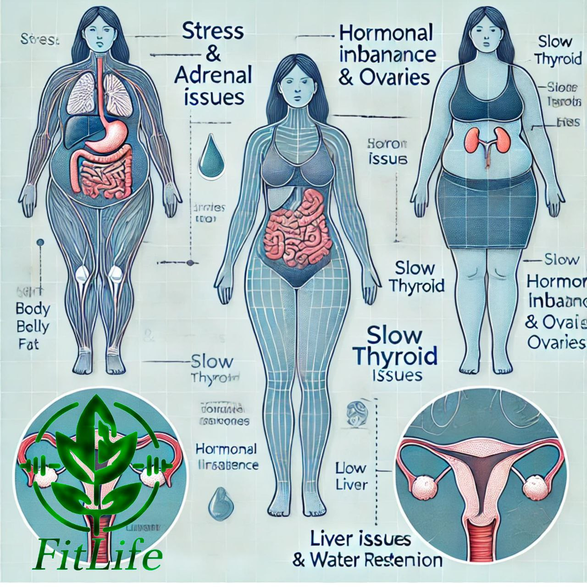 Внешний вид твоего тела может многое рассказать о состоянии здоровья. Если ты замечаешь, что жир откладывается в определенных местах, это может быть сигналом о внутренних нарушениях. Давай разберёмся, что именно скрывается за разными типами набора веса. Когда мы находимся в хроническом стрессе, надпочечники вырабатывают много кортизола — гормона, который помогает организму справляться с нагрузками. Но побочным эффектом является накопление жира в области живота, особенно вокруг внутренних органов (висцеральный жир). - ✔️ Округлый живот, даже если остальное тело не полное. - ✔️ Усталость, проблемы со сном. - ✔️ Тяга к сладкому и кофе. - Уменьшить уровень стресса (медитация, прогулки, сон не менее 7 часов). - Уменьшить кофеин (он стимулирует кортизол). - Питаться сбалансированно, избегая скачков сахара в крови. Гормональный дисбаланс, связанный с проблемами в работе яичников (например, синдром поликистозных яичников, эстрогеновое доминирование), приводит к отложению жира в нижней части жи