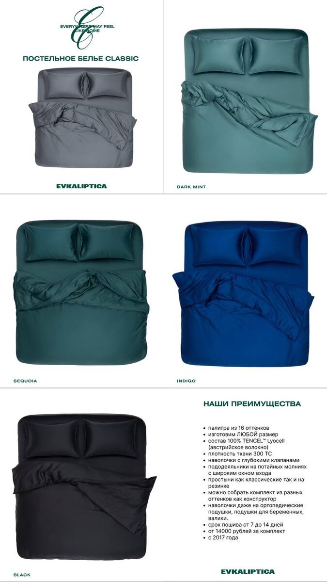 🌿 16 оттенков — и каждый из них о настроении. Мы сделали эту подборку, чтобы вам было проще выбрать бельё. Хотя простым выбор из нашей палитры не будет… Это наш «классик»: базовые комплекты из 100% TENCEL™, которые будут радовать каждый день. Выбирайте глазами, сердцем — и сохраняйте себе. Потому что когда вы решите: «Хочу красивое и хорошее» — оно будет под рукой. 📌 Пост в закрепе — чтобы вы могли вернуться в любой момент. Если что-то откликнулось — пишите в комментариях или в чате на сайте. Оттенки mimosa, eucalyptus, black pearl, indigo лимитированы. Evkaliptica.com